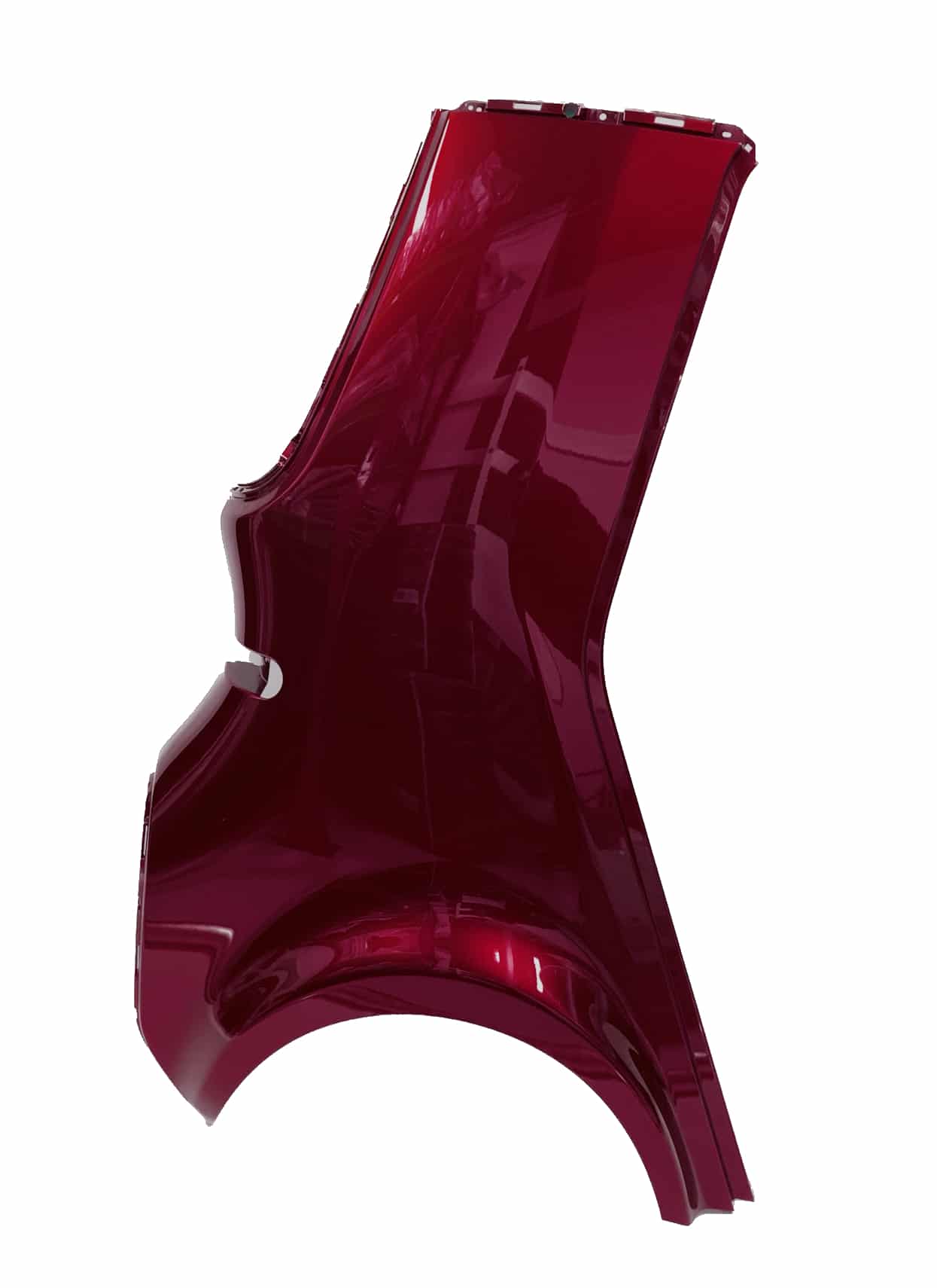 Højre bagskærm, der går fra kanten ved baghjul og op til kanten af taget, til E-Force R2.