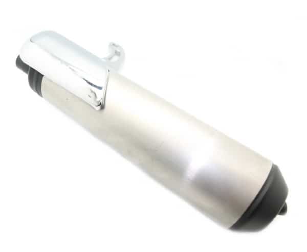 Original bagerste lyddæmper til Suzuki Street Magic. Leveres med ophæng og det lille chrom skjold.