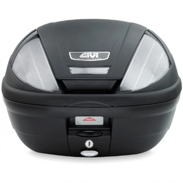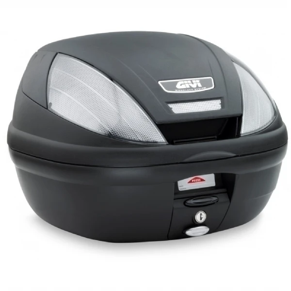 Kompakt scooter topboks fra GIVI. Topboksen har medfølgende universal topplade og kan blive monteret direkte på de fleste scooterbagagebære. Boksen kan rumme 1 hjelm samt handsker og regntøj og må maksimalt lastes med 3 kg. Til boksen kan tilkøbes farvede låg, indertaske, stoplys og ryglæn. Mål (HxBxD): 324x480x415 mm